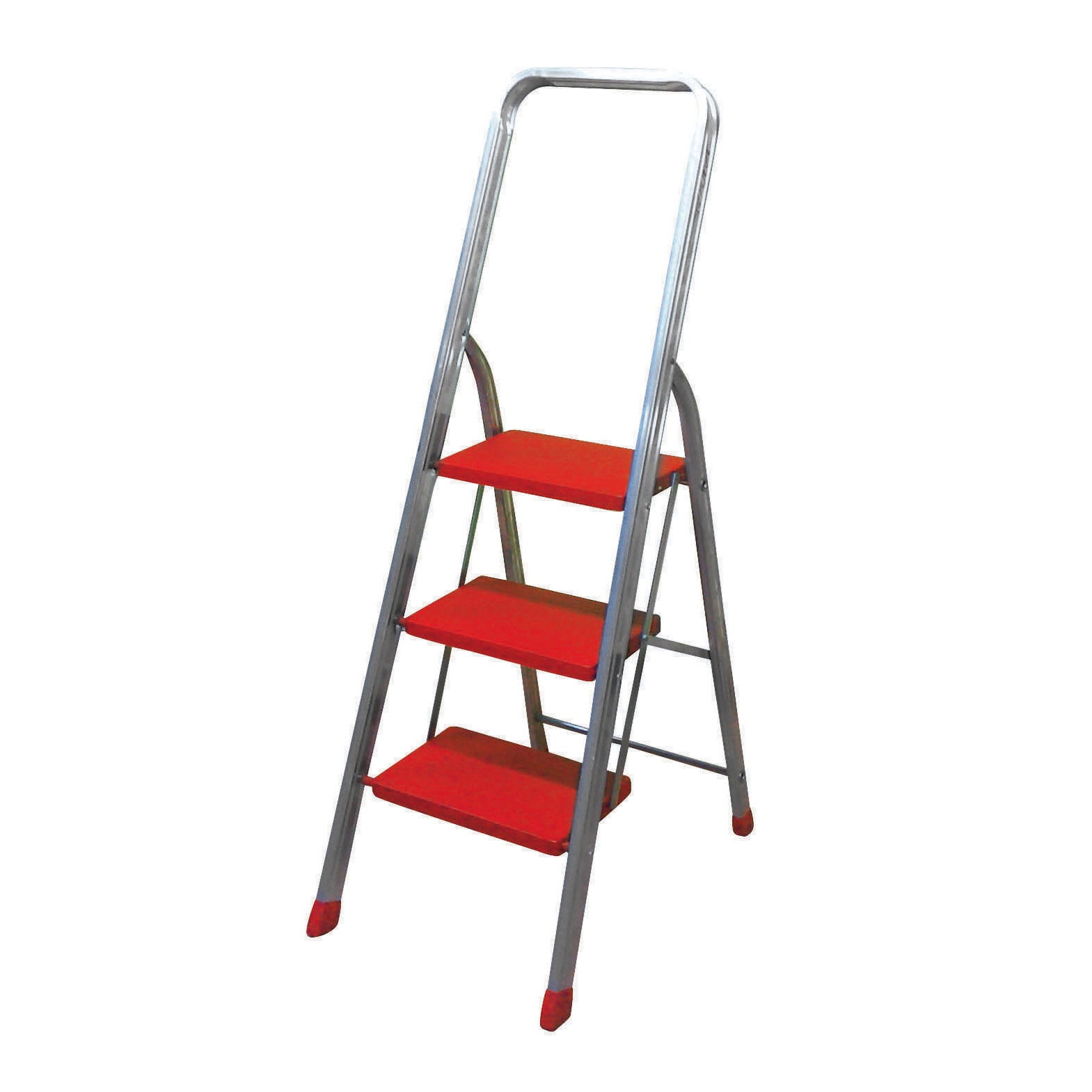 Sgabello in alluminio estruso a 3 gradini. Dotato di ampi piani di salita antiscivolo in alluminio verniciato. Dotato di ampio parapetto di sicurezza. Sezione profilo montante 50x20 mm. Piano da 345x240 mm. Conforme alla normativa europea EN 131. Portata 150 kg.
