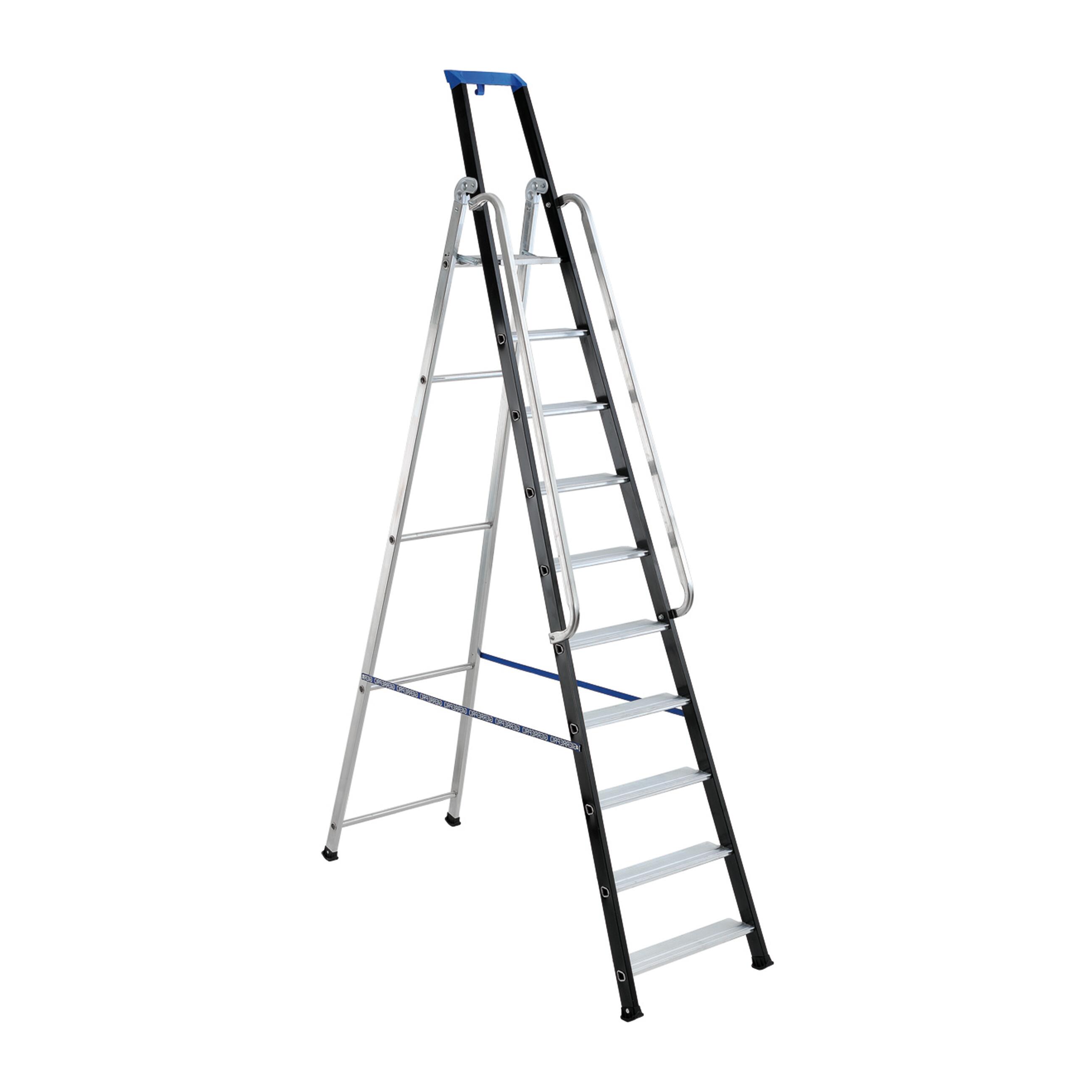 Conforme a UNI EN 131. Ideale per uso professionale. La struttura in alluminio rende la scala resistente, leggera e facile da trasportare