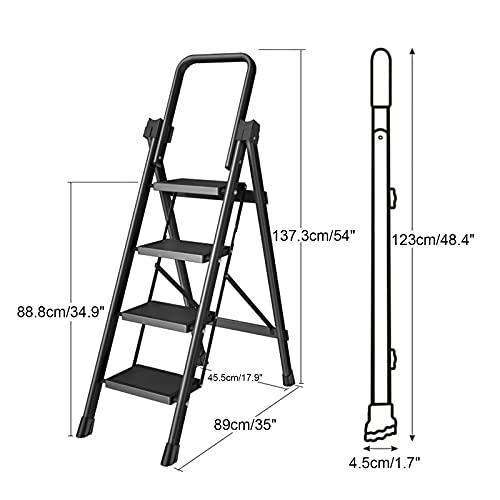 LIUU Scala 4 Gradini Leggera,Bracciolo può Essere Piegato,Scaletta Pieghevole 4 Gradini 150 kg,Scaletta 4 Gradini Pieghevole con Robusto Telaio in Acciaio (Color: Black)