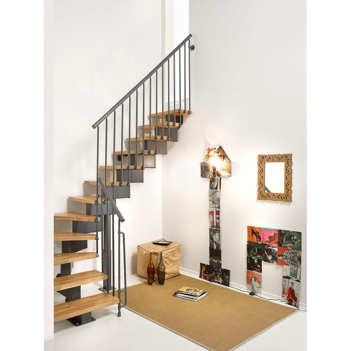 Oak.90 è una scala a rampa in kit semplice da montare, facile da configurare e con massima adattabilità al vano scala. Infatti, la regolazione in altezza, pedata e rotazione durante la posa in opera permette, oltre alla massima adattabilità al vano scala, anche configurazioni rettilinee con una o due curve. La struttura della scala è in acciaio verniciato, con gradini in legno massello rovere tinta naturale. Il corrimano è in PVC con un'anima di alluminio e la ringhierà è composta da colonnine in acciaio verniciato. Tre sono le larghezze disponibili: 70, 80 e 90 cm. Scala prefabbricata, facile da montare per chi ama fai da te.. Eleganza e naturalezza grazie ai gradini in legno di rovere
