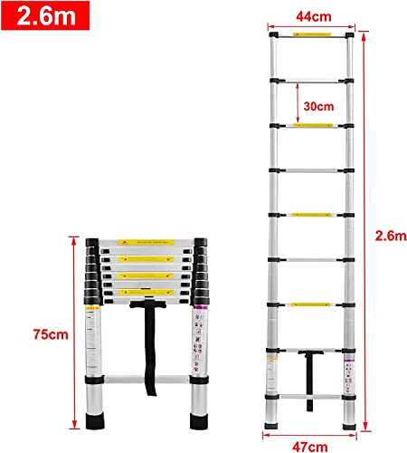 ★ 【Materiale della scala telescopica】 Realizzato in lega di alluminio resistente per garantire una capacità di 150 kg. Veloce, leggero, compatto e facile da usare. È più sicuro e confortevole. Gradini antiscivolo. Distanza tra i gradini: 30 cm.