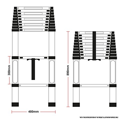 Scala telescopica da 3,8 m, in alluminio, pieghevole, allungabile, per costruttori, multiuso