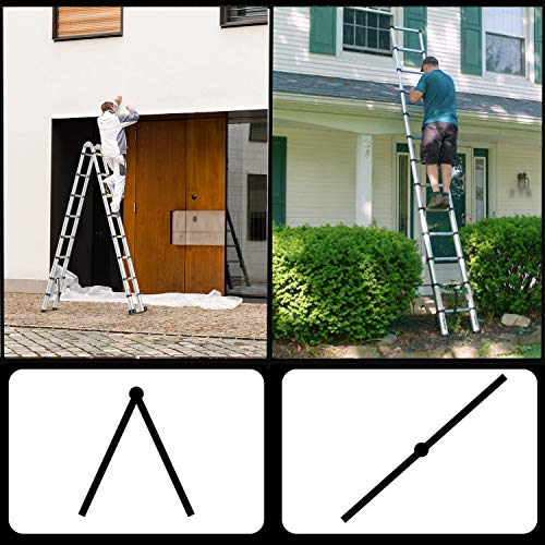 Una robusta cinghia di chiusura fissa saldamente la scala, facile da trasportare con una mano. Ideale per la manutenzione di case / edifici, lavaggio di finestre, decorazione di esterni / interni, pittura, ecc. Peso netto approssimativo di 18,2 kg.