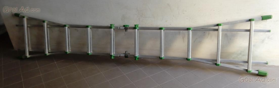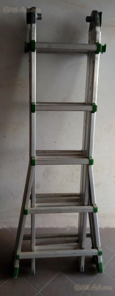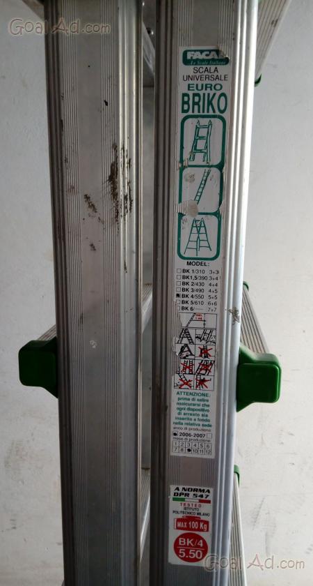 Scala telescopica 5+5 FACAL VERDE professionale . come nuova, multiuso telescopica in alluminio con 5+5 gradini. E’ dotata di cerniere fuse con anime d’acciaio incorporate inattaccabili da agenti atmosferici ed impossibili al cedimento (Brevetto), che portano i montanti alla massima lunghezza e consentono ampie soluzioni d’utilizzo con opzione di libera a cavalletto che permette l’apri/chiudi strategico in ambienti ridotti. I gradini esterni sono fissati ognuno con 6 saldature robotizzate (3+3), mentre i montanti legano le cerniere con 18 punti di fissaggio. Portata massima 150 kg ritiro su Grosseto