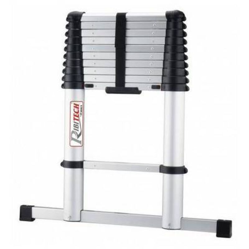 Scala telescopica con apertura parziale o totale ideale per qualsiasi lavoro all'esterno o all'interno. Lunghezza max 3,20m. Barre rettangolari in alluminio con scanalature antiscivolo. 2 pioli di bloccaggio in acciaio per gradino, con leve di blocco visibili. Montanti cilindrici scorrevoli in alluminio. Discesa lenta durante la chiusura. Sbloccaggio mediante leve di sicurezza. L'ingombro ridotto e la leggerezza ne semplificano il trasporto e la sistemazione. Carico massimo 150 kg. Peso 11,3 kg.(DianFlex)