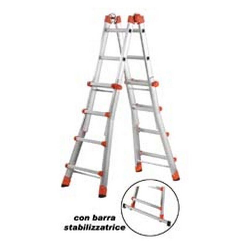 Telescopica, progettata e costruita secondo le normative europee en 131, dlgs 81/08, portata max kg.150 - struttura in alluminio solida con l'aggiunta di rinforzi - sezione montanti pi? larghi in alluminio mm.50x25 con profilo stondato - gradino in allumi