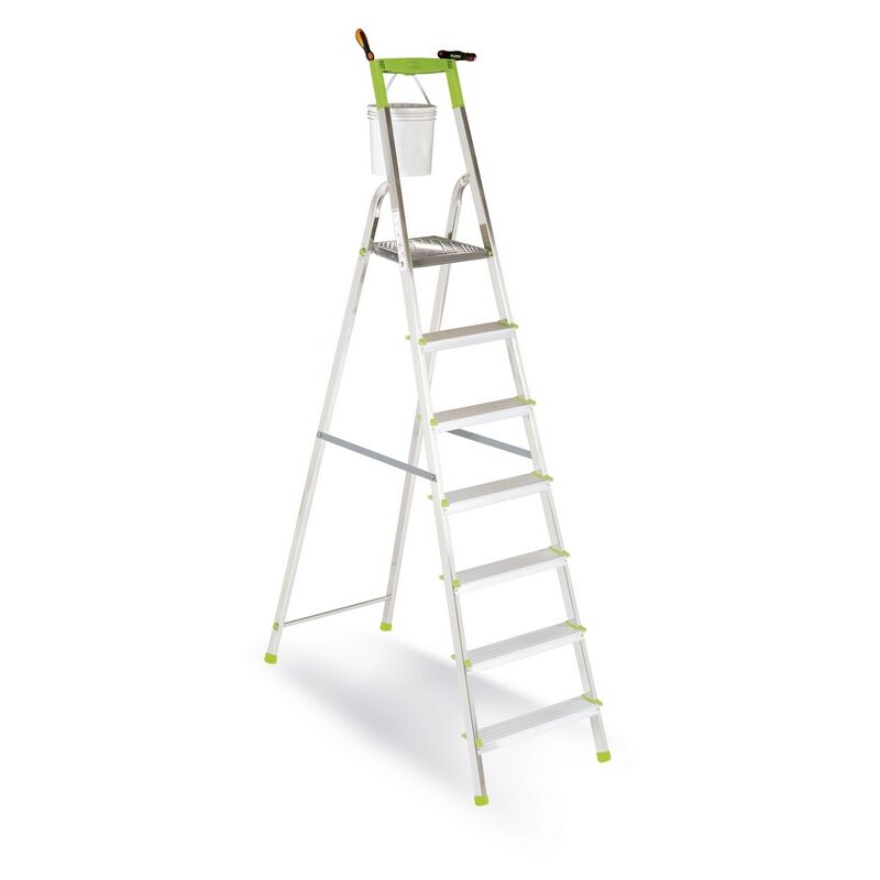 Scala vetta 7 gradinio in alluminio con piattaforma e parapetto