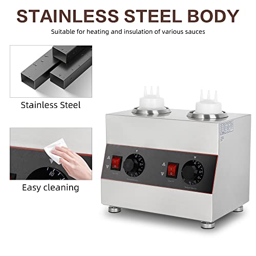 Scalda salsa elettrica commerciale, distributore di salsa in acciaio inox, scaldabagno per formaggi, controllo meccanico della temperatura, doppia modalità di riscaldamento 30-85℃. (2 griglie)