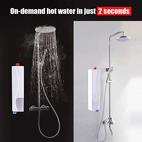 Scaldabagno Elettrico Istantaneo, 3000W Mini Scaldacqua Istantaneo per Cucina, Bagno, Mini Riscaldatore di Acqua Calda Istantaneo, Riscaldamento Rapido Senza Serbatoio, Bianco