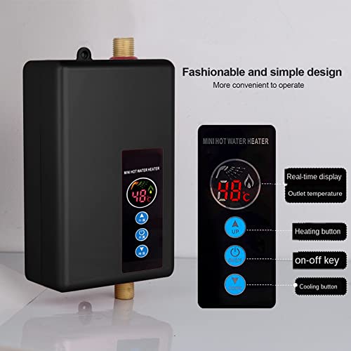 Scaldabagno elettronico per bagno, 5500 W, con diverse misure di sicurezza, mini scaldacqua istantaneo, per casa, cucina, lavaggio (nero)