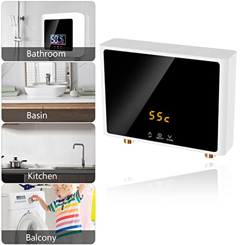 Facile da usare: touch screen, facile da capire, premere a lungo il pulsante "DOWN" per 6 secondi, è possibile passare da Celsius a Fahrenheit. A causa dell'elevata potenza di 5500 W, può essere utilizzato nel lavello della cucina, nella vasca da bagno e nella doccia.Maggiore è il flusso d'acqua, minore è la temperatura dell'acqua. Se utilizzato in inverno, la temperatura dell'acqua viene riscaldata da 5 ℃ a 40 ℃, che può riscaldare 1,8 litri di acqua al minuto.