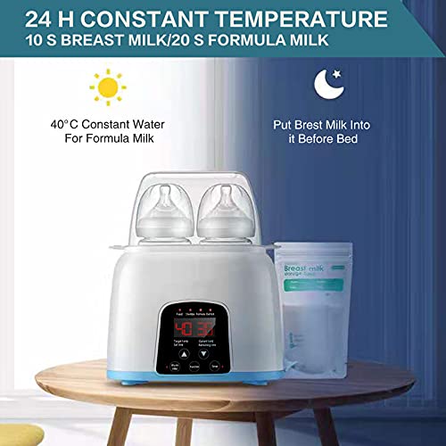 Scaldabiberon, Sterilizzatore per Biberon, Scaldabiberon, Scaldabiberon doppio per latte materno, con display LCD, timer e 5 accessori (Blu)