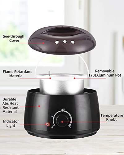 Ceretta a casa: regalati la ceretta perfetta a casa. Allestisci un salone di ceretta a casa con questo kit di cera dura con tutto il necessario. Set scaldacera completo di riscaldatore elettrico per scaldacera per la casa di nuova generazione, 5 perline di cera con diverse formule, 5 vasetti di cera in silicone di ricambio, 30 bastoncini applicatori di cera. La ceretta a casa non può essere più facile con il kit per la ceretta domestica.