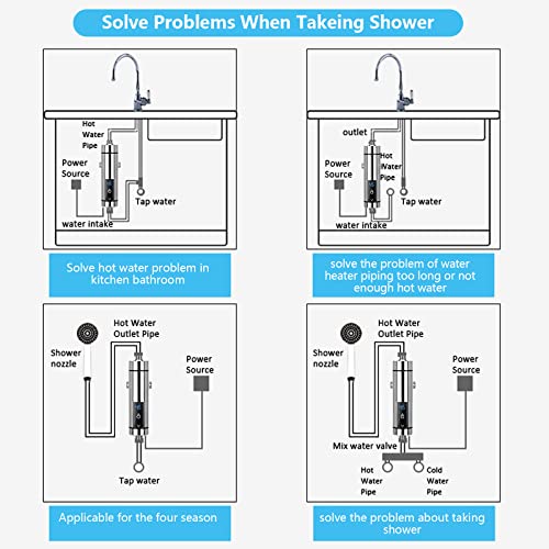 Mini Scaldacqua Istantaneo con Kit Doccia, Scaldabagno Elettrico Istantaneo Riscaldamento dell'acqua Tankless per Bagno Cucina, Display della Temperatura a LED