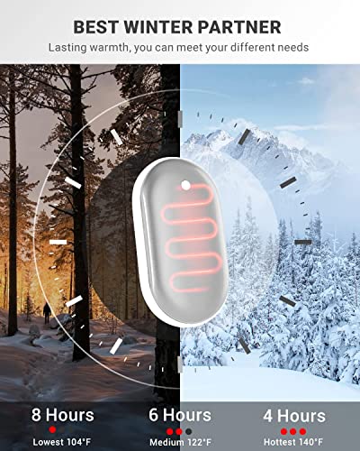 8 ore di calore continuo, riscaldamento a 3 livelli: La massima di riscaldamento dello scaldamani elettrico è fino a 8 ore, e l'area di riscaldamento a doppio lato è più grande delle altre aree, in modo che l'intera mano venga avvolta e riscaldata rapidamente. Puoi goderti le attività all'aperto con la tua famiglia e i tuoi amici. È il tuo compagno caldo nelle fredde giornate invernali.