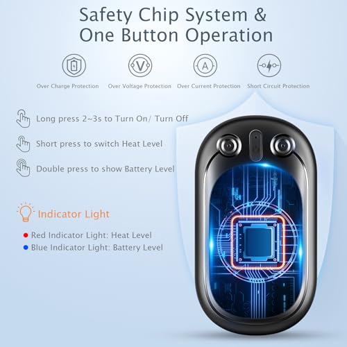 Funzionamento con un solo pulsante e ricaricabile: I nostri scaldino elettrico possono svolgere tutte le funzioni con un solo pulsante: Premere a lungo per 2~3s per accendere/spegnere (spia rossa);