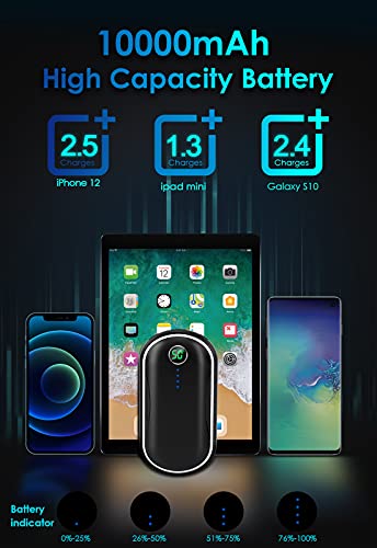 Scaldamani Ricaricabile, 10000mAh Scaldamani elettrico digitale Power Bank Scaldamani tascabile USB portatile, 15 ore di calore a lunga durata Regali invernali per uomo, donna, sport all'aria aperta