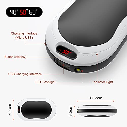 Scaldamani Ricaricabile, 10000mAh Elettrico Scaldamani, Riutilizzabile Scaldamani Elettrico USB Portatile, Schermo Digitale da 40-60°C, 3s Scaldini Istantanei, Ottimo per Raynauds, Outdoor, Campeggio