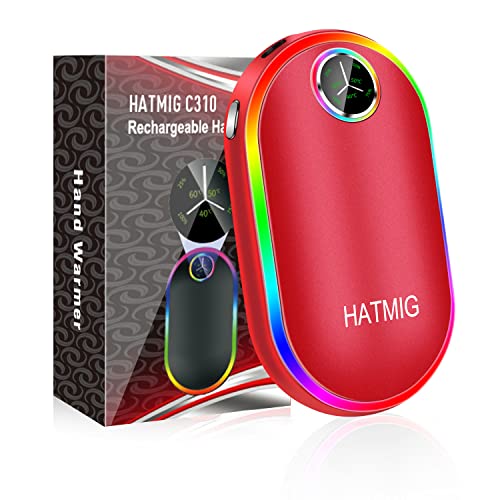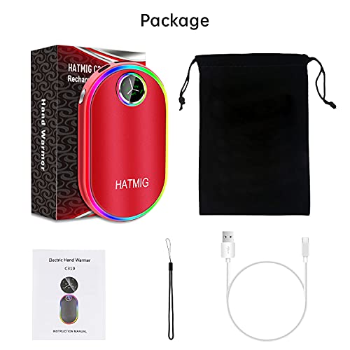 Scaldamani Ricaricabile, HATMIG 10000mAh USB Riscaldatore Scaldamani Elettrico Portatile Power Bank con display a LED e luce colorata - rosso