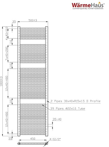 Scaldasalviette Calorifero Termoarredo Moderno Bergen 1800 x 500mm Interasse: 450mm - 813Watt Bianco