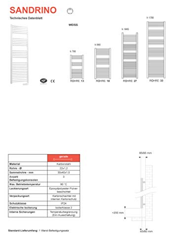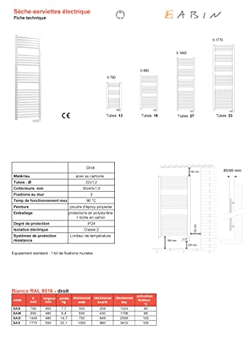 Scaldasalviette elettrico con termostato elettronico (1445 mm x 480 mm)