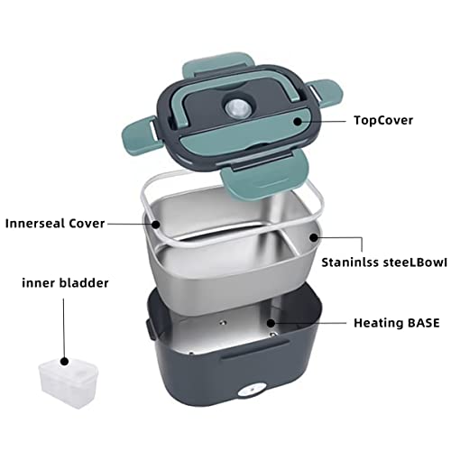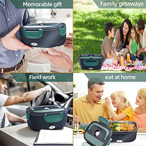 Scaldavivande Elettrico,Scaldavivande Portatile 3 in 1 per Auto e Casa, Contenitore Rimovibile in Acciaio Inossidabile 304, Forchetta e Cucchiaio SS e Borsa Per il Trasporto