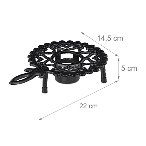 2x Scaldavivande, Scalda Tazze, Teiera e Caffettiera, in Ghisa, 1 Lumino, Design Antico, Fornellino Rustico, Nero