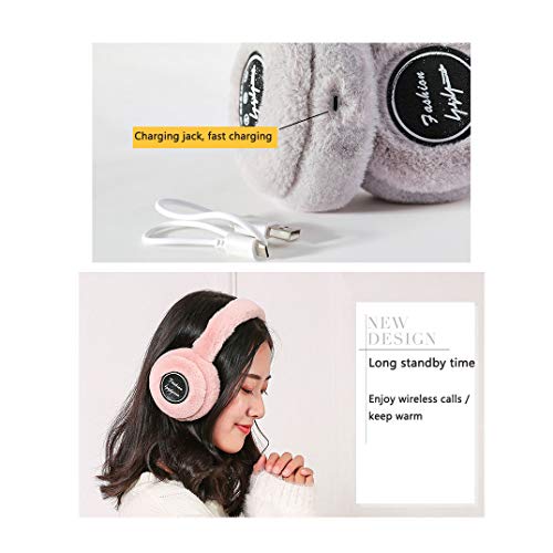 Scaldini Auricolari Bluetooth, Paraorecchie Musicali Pieghevoli Bluetooth, Altoparlanti HD E Microfono Integrati, Scalda Orecchie Musica Wireless per Sport Invernali All'aperto,Rosa