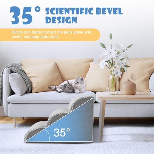 Scale per Cani, PaNt Antiscivolo 3 Gradini in Spugna Schiuma Morbida Scaletta per Gatti Scalini Divano Letto Con Copertura Lavabile E Fondo Antiscivolo, Rampa Portatile Per Cani E Gatti, 55*40*30cm