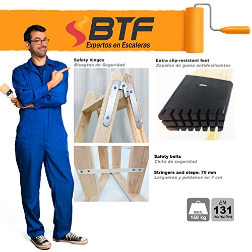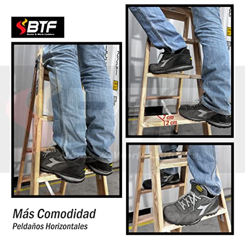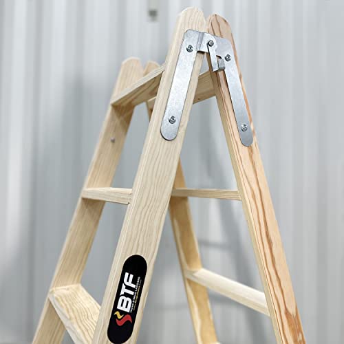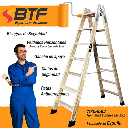 BTF® Scale a forbice in legno pino doppia salita certificate. Ideale per Pittore Professionisti, Gessolista, Elettricista o anche per la tua casa! 7+7 gradini, H.169 cm. Rif. BTF-MDP007