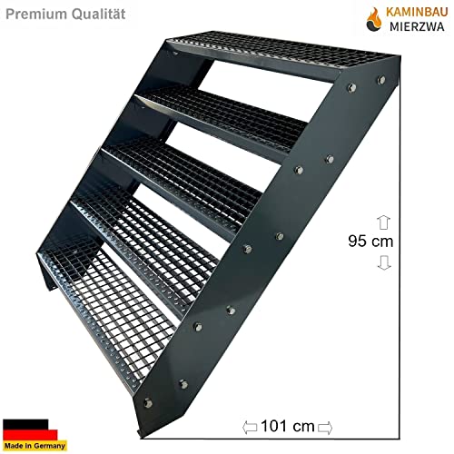 Scale con griglia in acciaio Premium 5 Gradini Completamente zincata e Antracite Verniciata a polvere - Dimensioni (L x L x H) 101cm x 120cm x 95cm Resistente alle intemperie e alla corrosione