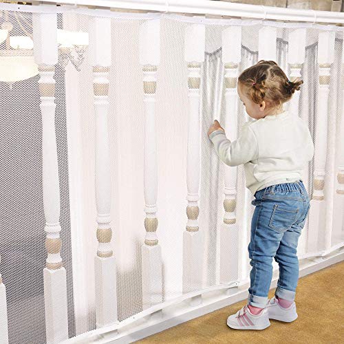 Rete per Scale di Sicurezza per Bambini, 3m/10Rete di Sicurezza per Ringhiere per Scale, Rete di Sicurezza per Balcone con Corda e Fibbia in Plastica (Bianca)