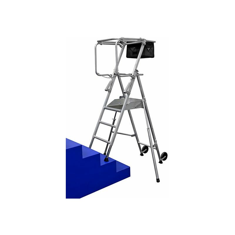 USO - Allestimento o ristrutturazione di vani scala - Rifacimento di scale, installazione di punti luce, apparecchi di illuminazione, ecc. - Tinteggiatura, ritocchi, carteggiatura, stuccatura, ecc. - Lavorate in posizione libera, senza appoggiarvi alla parete: non lascerete traccia. LAVORARE IN SICUREZZA - Parapetto per evitare che l'operatore cada. - Zoccoli per evitare di cadere dalla piattaforma o di far cadere un attrezzo. - Stabilizzatori laterali per evitare il rischio di ribaltamento. CARATTERISTICHE - 2 altezze di piano per il DAHU4/5: da 0.73 a 0.85m. - 1 altezza del pavimento in piano per il DAHU4/6: 0.85m. - Scala speciale a palchetto con 4 piedini regolabili in modo indipendente e 4 pattini antiscivolo. - PIRL si adatta a tutte le altezze delle scale. - Il corrimano pieghevole occupa meno spazio quando è ripiegato. - Stabilizzatori regolabili al millimetro e ripiegabili lungo i montanti. - La scaletta a palchetto può essere utilizzata anche su pavimenti piani e può essere