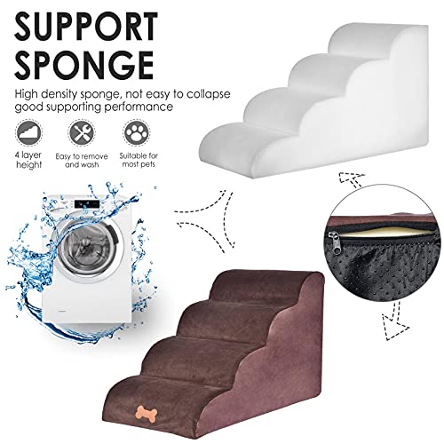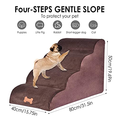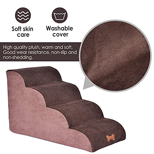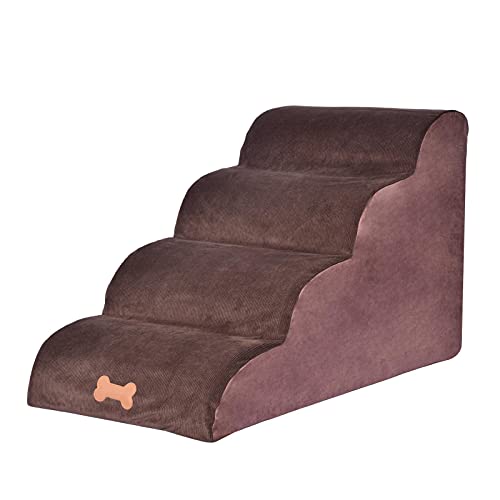 ❤ 【GRANDI DI SCALE PER ANIMALI A 4 STRATI】 Le scale per animali domestici hanno un design a 4 gradini, realizzato in tessuto esterno in velluto a coste e una spugna interna ad alta densità, comprimibile, morbida al tatto e può impedire agli animali di ferirsi.