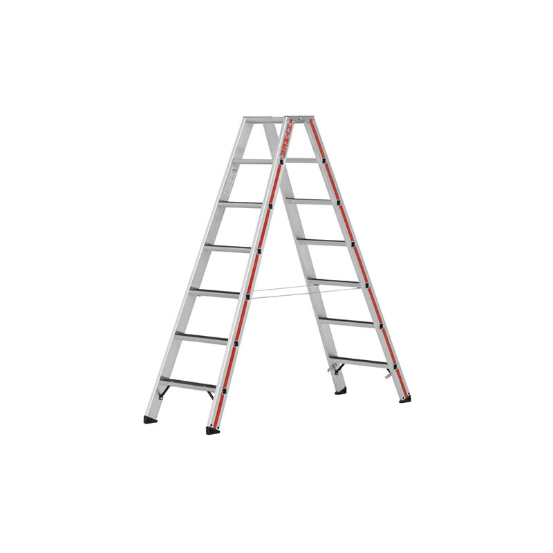 USO - Scaletta estremamente robusta: ideale per un uso intensivo. - In ambienti industriali per la manutenzione dei macchinari - In edilizia per lavori strutturali, di costruzione o di rifinitura - Estremamente robusta per un uso intensivo RESISTENZA ANTISCIVOLO R13 - Scaletta doppia progettata con resistenza antiscivolo R13 per una presa molto forte. - Massima resistenza antiscivolo, adatta alle aree di lavoro ad alto rischio di scivolamento e caduta. - Garantisce la massima sicurezza in diverse aree di lavoro. - Nell'ambiente industriale per la manutenzione di macchine e strumenti di produzione con presenza di oli. - Per pavimenti di preparazione di alimenti, cucine, garage o sale taglio. ALTEZZA DI LAVORO CONFORTEVOLE - L'altezza di lavoro confortevole corrisponde all'incirca all'altezza del terzo piolo superiore + 1.00m. - Lavorare costantemente con le mani all'altezza degli occhi. ALTEZZA MASSIMA DI LAVORO - L'altezza massima di lavoro corrisponde all'incirca all'altezza del