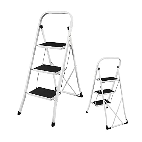 Scaletta a 3 Gradini in Metallo, Mini Scala Pieghevole, Scala Portatile Pieghevole, Scala Compatta leggera,Scala Cucina, Portata 150 kg