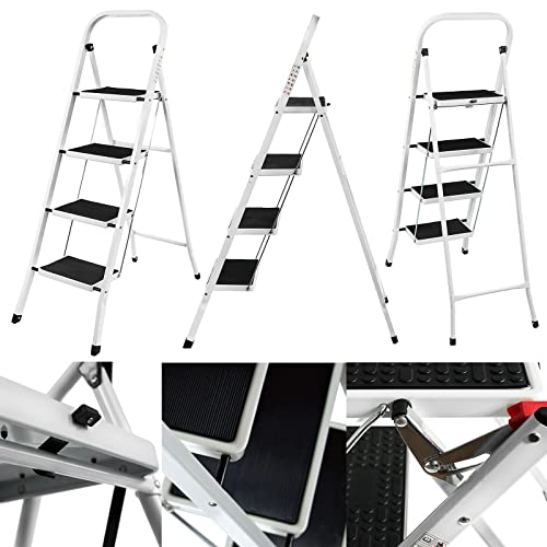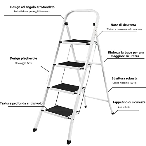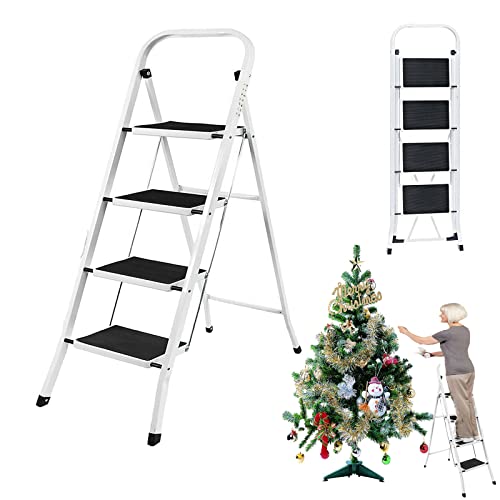 Scaletta pieghevole 4 gradini, casa e cucina gradino pieghevole Scaletta 4 gradini in acciaio, Antiscivolo Scala multiuso pieghevole per lampadine decorative, albero di natale, Portata 150 kg