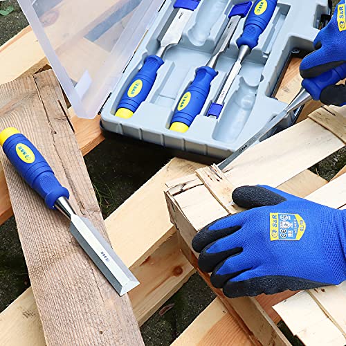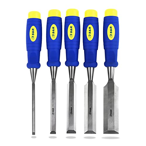 S&R Scalpelli per Legno. Set di 5 Scalpelli: 6, 12, 20, 25, 32 mm. Impugnatura Multicomponente. Professionali. In comoda Scatola Trasparente