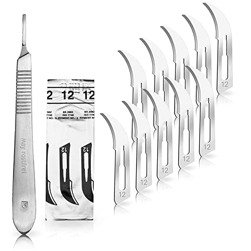 Set di 10 lame per scalpello 12 in acciaio al carbonio - Lame di ricambio confezionate singolarmente sterile + 1 x May - Supporto per scalpello - Acciaio inossidabile