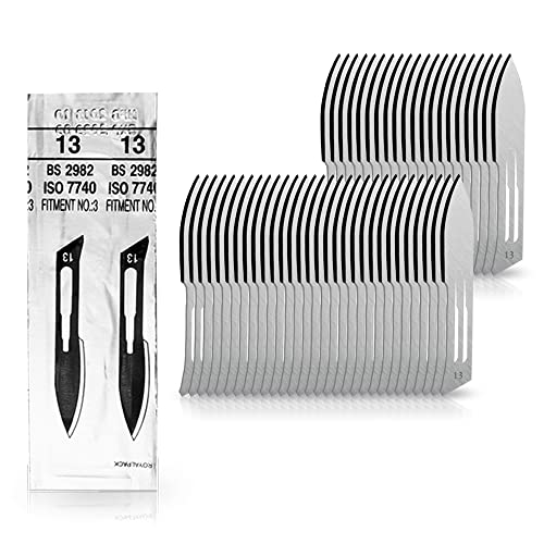 50 lame per scalpello figura 13 in acciaio al carbonio per supporto scalpello n. 3 - Lame di ricambio confezionate singolarmente sterili.