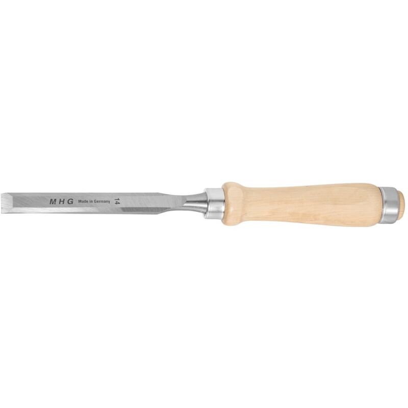 esecuzione rettificata lucida. Durezza e resistenza del tagliente collaudate singolarmente. Materiale: Acciaio speciale di altissima qualità. Dati tecnici Materiale impugnatura Legno Tipo di prodotto Scalpelli per legno Lunghezza complessiva, mm 250 Larghezza dei taglienti, mm 14