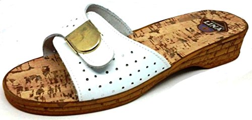 Lina Scalzati, Ciabatte Donna Art. 046 Pelle Bianco, Sottopiede Sughero