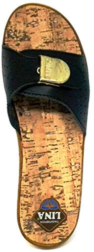 Lina Scalzati, Ciabatte Donna Art. 046 Pelle Nero, Sottopiede Sughero