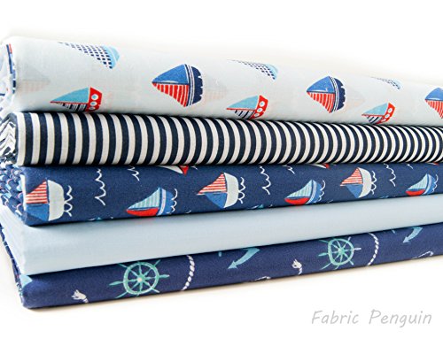 Scampoli di tessuto per bambini a tema nautico con ancore e barche, colori blu, blu scuro e bianco