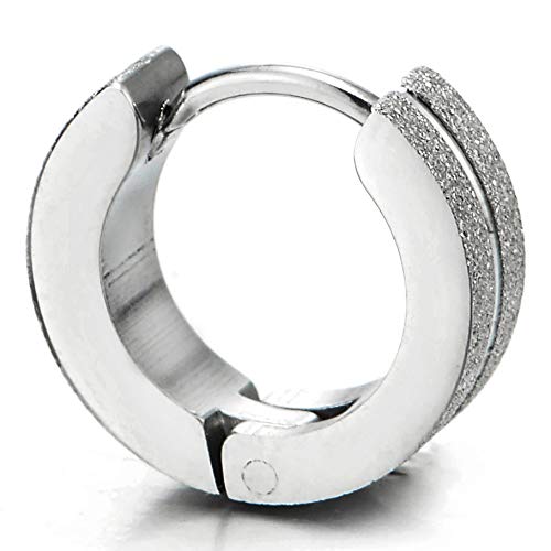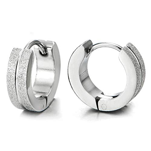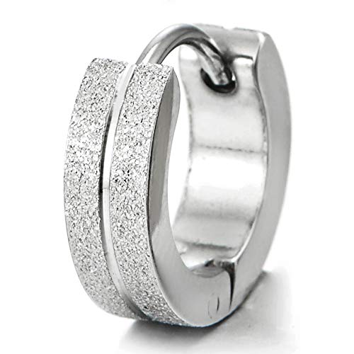 2 Scanalato Orecchini a Cerchio, Orecchini da Uomo Donna, Acciaio Inossidabile, Satinato