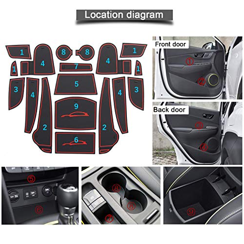 YEE PIN Scanalatura Della Porta Tappetino Antiscivolo Compatibile Con Hyundai Kona 2017 2018 2019 2020 Accessori Interni Automobilistici Scatola Di Immagazzinaggio Mat Gomma Morbida