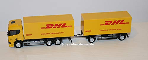 Scania CR High Roof Interchangeable Box Trailer - DHL. 1:87