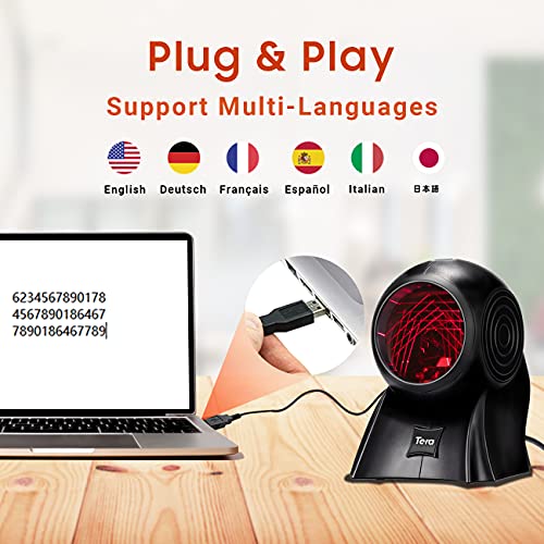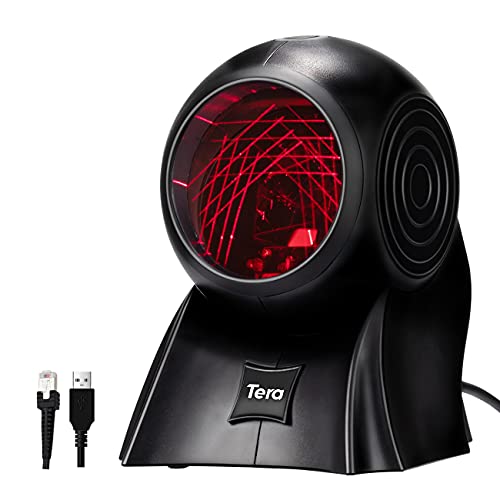 Tera Scanner di codici a barre omnidirezionale 1D Laser Scanner di codici a barre desktop con cavo USB Lettore di codici a barre cablato con supporto, L0014Y..