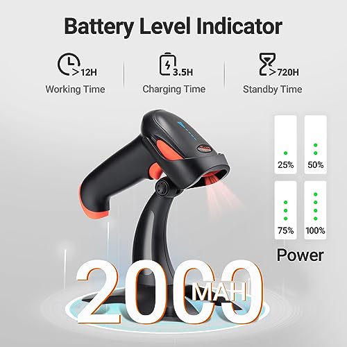 Batteria 2000mAh e 3 Avvisi - Batteria a 2000mAh supporta un funzionamento continuo di almeno 20 ore e un tempo in stand-by fino a 60 giorni. Oltre al cicalino e alla luce LED, a conferma dell'avvenuta scansione, sentirai una lieve vibrazione come segnale tattile. Il buzzer può essere disattivato per consentire un funzionamento silenzioso.