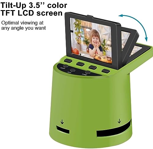 Schermo a colori da 3,5 pollici inclinabile: lo scanner per diapositive è facile da usare e funziona in modo indipendente, senza computer o software. Lo schermo LCD TFT a colori inclinabile ad alta risoluzione da 3,5 pollici ha una luminosità regolabile e una comoda inclinazione per un facile utilizzo e visualizzazione delle immagini.
